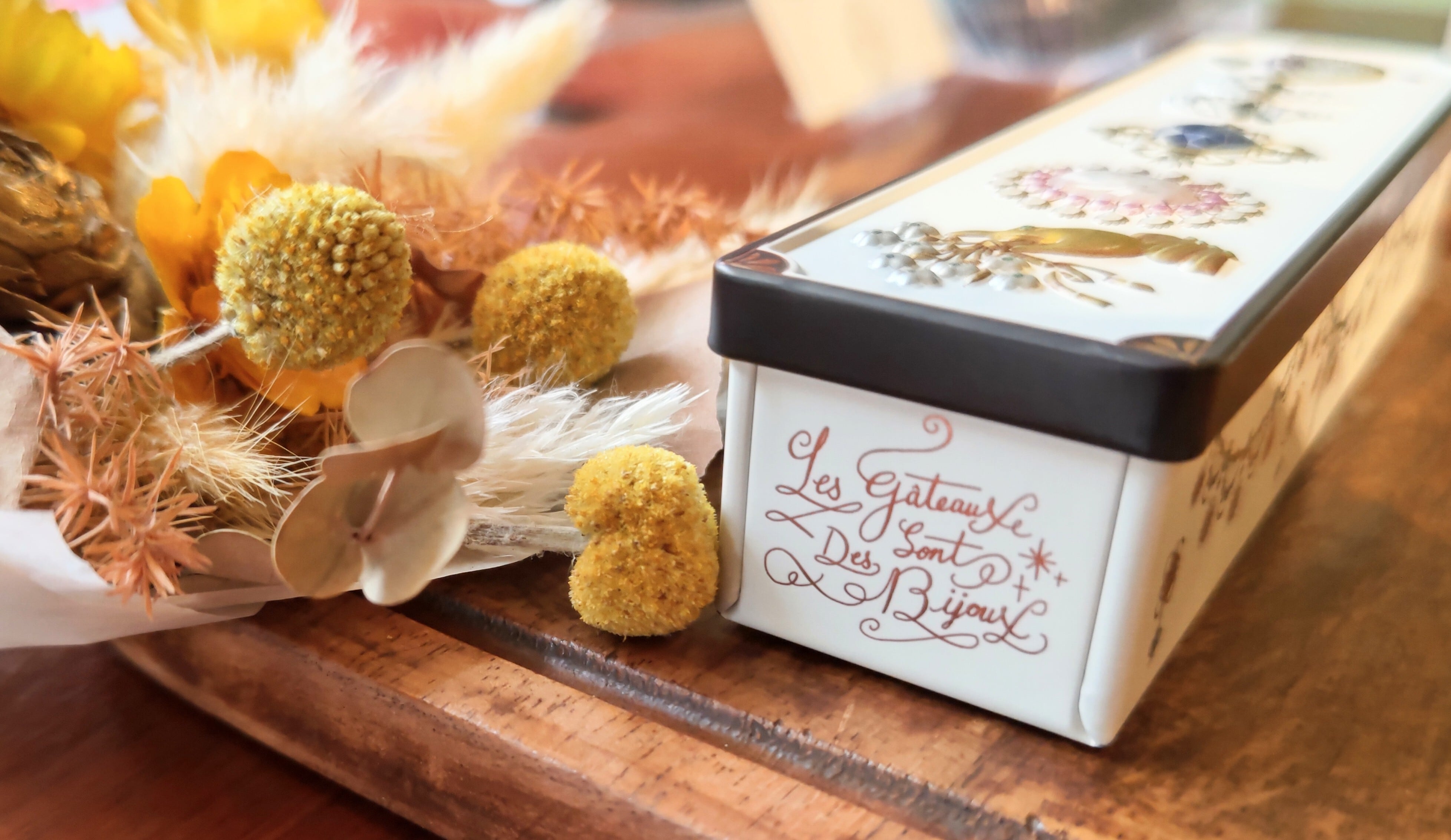 小麦粉(国内製造)、バター、砂糖、卵、アーモンドパウダー、コーヒーエキス、ココア、いちご、ピスタチオ