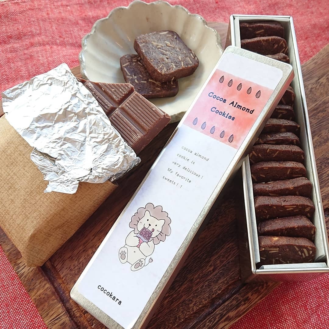 原材料:薄力粉、バター、砂糖、アーモンド、卵、ココア